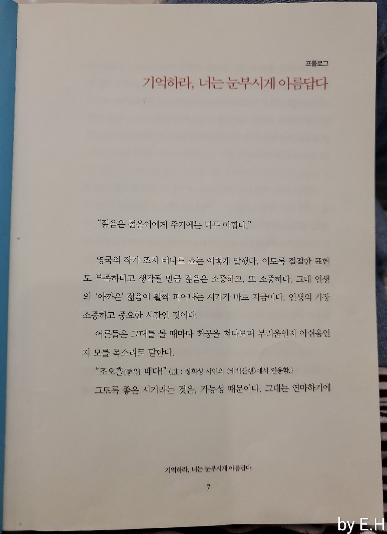무엇이 이리도 조급하고, 무엇이 이리도 서럽단 말인가? 나는 이만큼 살아온 것도 온통 감사할 것들 투성이 인 것을... 모두 각자의 시간이 흘러감을 때론 포효하는 거센 파도처럼 무섭게, 때론 구렁이 담넘 듯이 심드렁하게 느낄 테지. 내게만 시간이 빨리 가는 것도 더디 가는 것도 아님을 아는데도 요즘의 나는 왜 이리 모든 것이조급한 것인지?