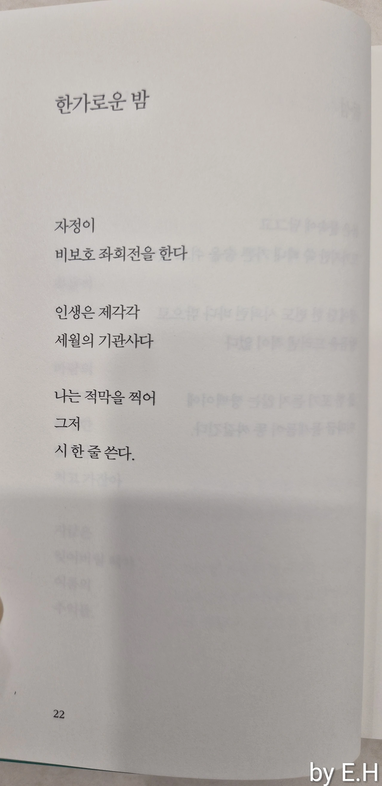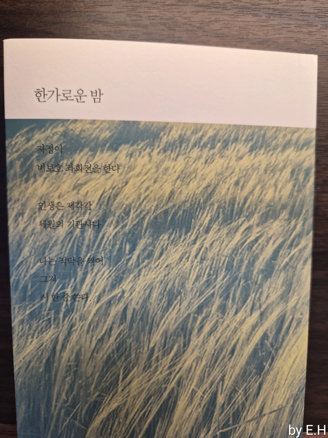 이 시 <한가로운 밤>은 선생님의 서른 번째 출간된 『바람의 얼룩』에 수록됐고, 뒤표지에도 실린 詩이다.