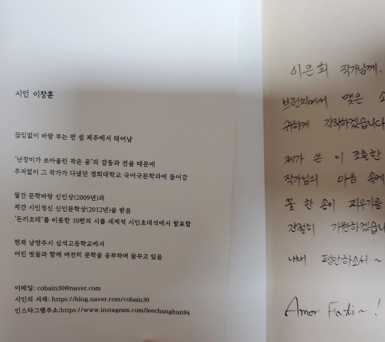 이창훈 시인이 브런치에 이벤트를 걸어둔 것은 작년 21년 10월이었지만 내가 그의 브런치 속에서 이벤트를 확인한 것은 올해 3월의 끝자락이었고 나는 염치 불고하고 그 이벤트에 참여가 가능한지를 물었고 흔쾌히 그의 귀한 시집을 받을 수 있었다.