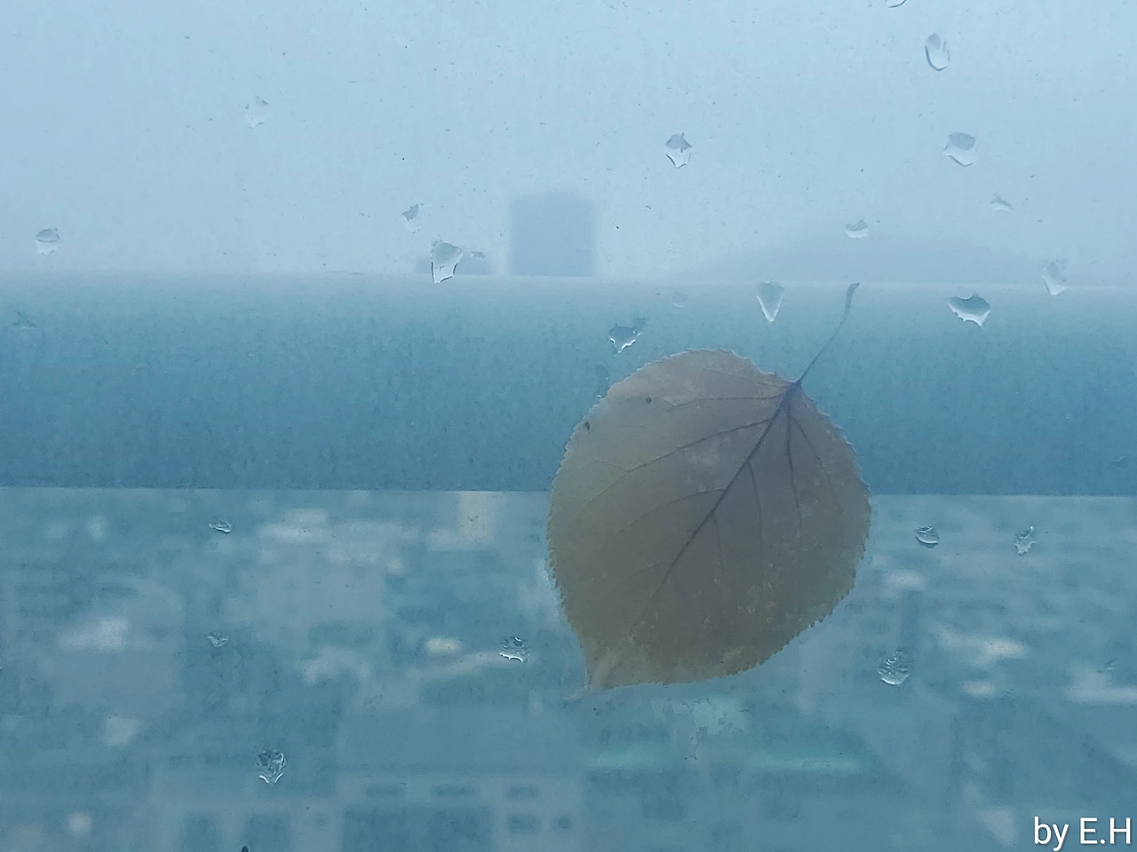 새벽까지 들이치던 비에 함께 어디선가 날아온 잎새, 이 잎새를 지탱하는 힘은 무엇일까?오늘 아침 생각이 많아졌다.
