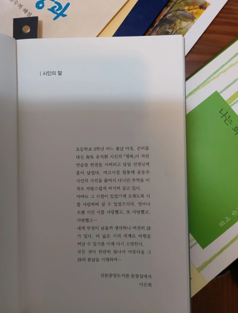 초등학교 5학년, 1985년 8월 15일, 모 어린이 문예지에 광복절 특집으로 실렸던 윤동주 시인의 생애와 詩를 읽고 그를 사랑하게 됐던... 열두 살 소녀는 그때부터 그와 같은 詩人이 되는 것이 꿈이 되었다.