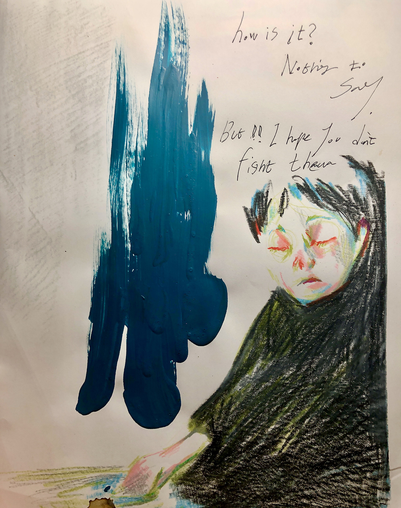 과연 죽은 사람도 망각되고 죽은 사람은 망각을 하며 죽어가는 가? 갑자기 이런 무거운 주제로 풀리는 것도 엉뚱한 일 이긴 하지만 어쩌면 망각이란 살아있는 사람의 특권 형태 일지도 모른다는 생각이 문득 들어 영영 떠나보낸 선생님을 기억하고 그 특권을 버리려 그림을 그려냈다.