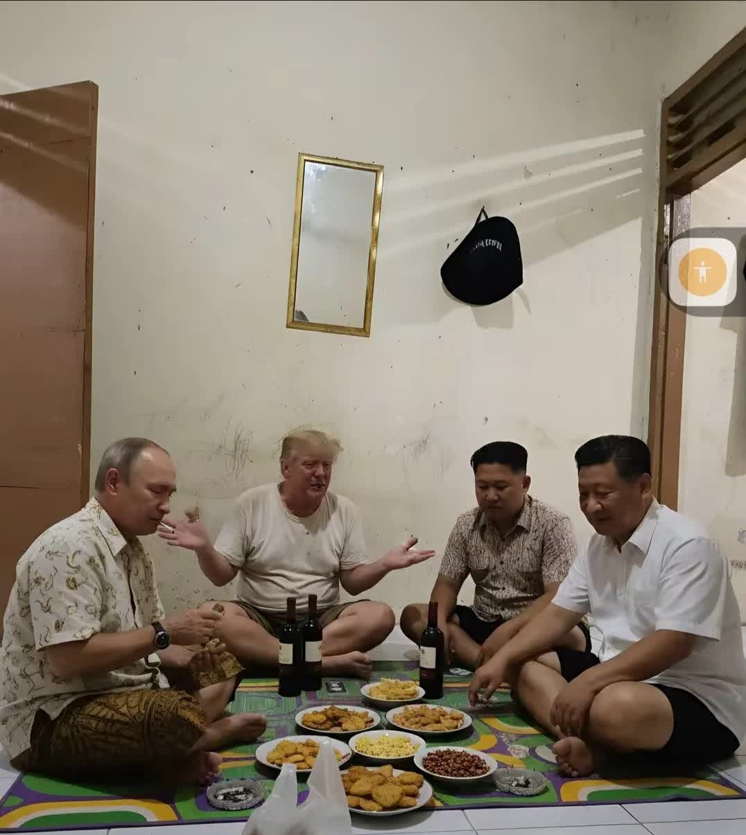 그렇게 모인 한 자리, 이들은 진핑이가 준비한 편한한 옷들로 갈아입고, 근처 식당에서 주문한 음식들과 술을 늘어놓고 먹고 마시며, 허심탄회하게 세계정세를 의논했다는 (할 것이라는) 이야기가 있답니다.