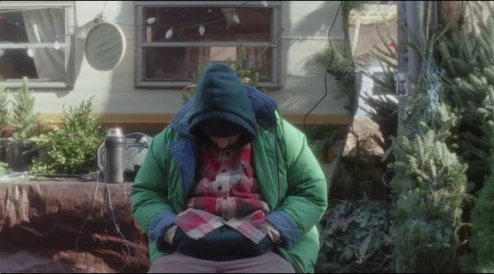이야기는 대략 이렇습니다: 작년 12월 겨울, 크리스마스 시즌동안 뉴욕 upstate 에서 애인과 Brooklyn 으로 내려와 다양한 소나무를 팔던 Noel, 이번 해에도 겨울이 되어 다시 나무를 팔러 내려왔지만 이번에는 혼자 내려온 듯 합니다. 아마도 이별의 시련이 있었던 듯 합니다. 작년에 이어 이번에도 잊지 않고 나무 한 그루를 사러 온 사람이 Noel 에게 이렇게 묻지요 - 작년 그 아가씨는 어쩐 일인지 올해엔 안 보인다고 - Noel 은 거의 표정이 없는 얼굴로 이번엔 그녀는 오지 않았다며 그에게 엷은 미소만을 짓습니다. 이 흥겨운 크리스마스의 계절이지만, 표정도 어둡고 말도 거의 없는 Noel 은 그저 의욕없이 하루 하루 시간을 흘려보냅니다. 북쪽 멀리서 타고 내려온 트레일러 하우스 안에서, 그리고 그 주변에서만 반복적인 한 달간의 생활을 하지요. 아마도 그는 애인과의 이별 후 미처 마음을 추스르지 못했었는지 이 연말의 festivity 에도 그저 자신의 집이나 다름 없는 트레일러와 같은 혼자만의 좁은 세상에서 좀처럼 나오지 않고 일할 시간만을 제외하고는 은둔에 가까운 생활을 합니다.