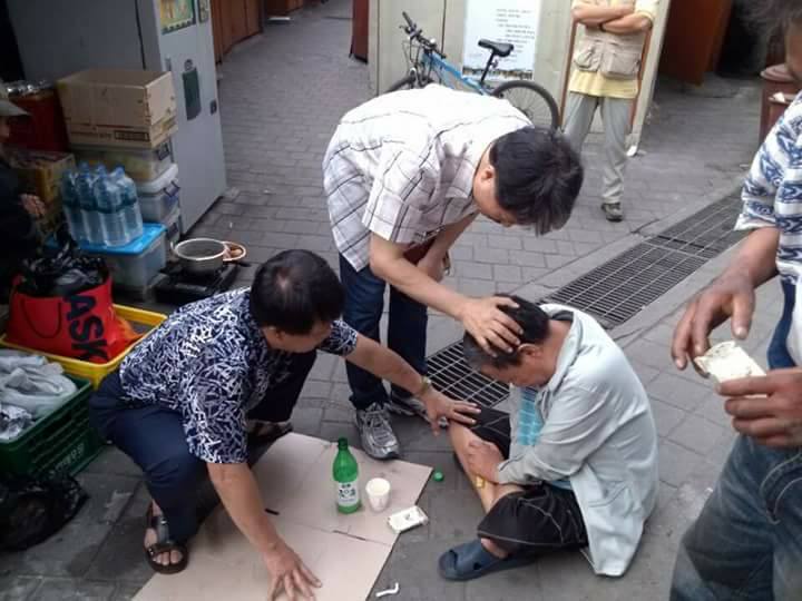 사진에서 길에 앉아 한 잔 걸치고 계신 분입니다. 옆에 있는 사람은 목사님이구요. "영등포 사우나연합회 회장" 이란, 별다른 직함이 아닌, 쪽방촌에 사는 이 분이, 다른 사람들이 길거리에서 명함을 주고받는 것이 너무 부러워서, 돈을 모으고 모아 명함을 파러 갔는데, 막상 가서 보니 적절한 직함 (직장이 없으니) 이 없어서, 동네에서 목욕탕을 갈 때 자신이 가장 앞장서서 가는 것에 착안하여 이런 직함을 만들었다고 합니다. 소주마시고 우는 사람에게 힘내라고 변화하라고 안수해 주시고, 뒷동네에서 찬양하다가 쉬면 동네 아주머니들이 와서 안마해주는 그런 동네가 아직도 있답니다. 아마도 요즘엔 이런 교회나 목사님은 찾기 어려우리라 봅니다 불가능합니다.