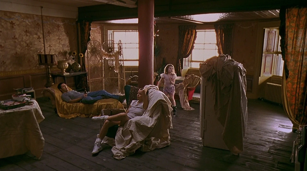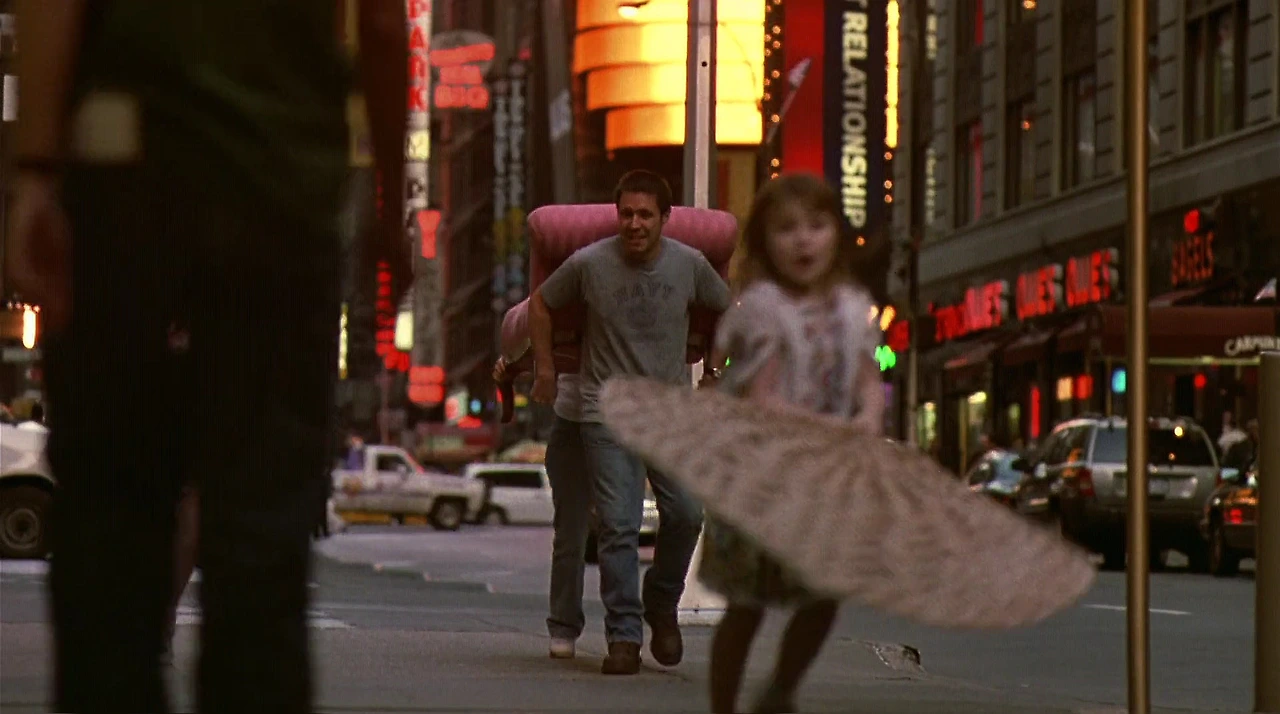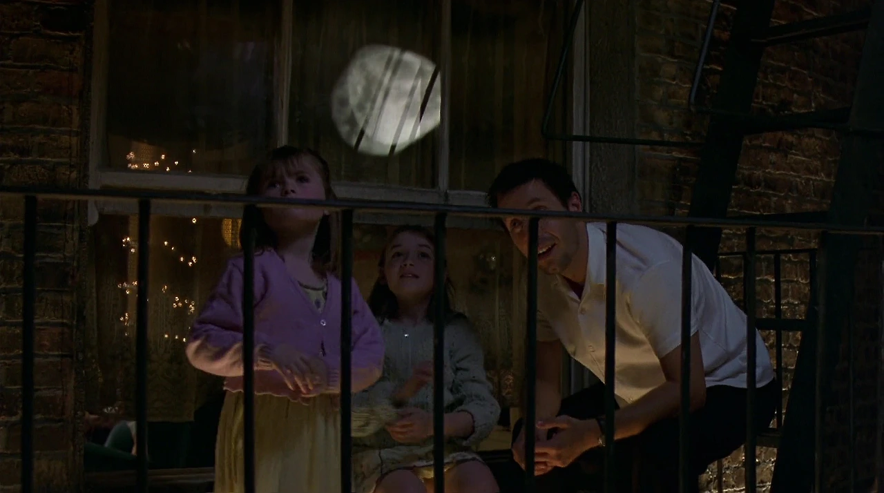 가난한 까닭에 이들은 맨해튼의 남쪽 Hell's Kitchen 내 어느 남루한 아파트에 월세로 들어갑니다. 마약중독자에, 의상도착증 환자에 (transvestites) 그리고 극도로 가난한 사람들이 사는 아파트에서 두 딸을 키우기가 쉽지 않지만 이민자들의 뉴욕에서의 첫 삶은 이렇게도 시작되는 경우가 많지요. 남편은 원래 Roman Catholic 이었지만 아들이 죽은 이후 신에 대한 믿음을 잃고 그 슬픔이 가족과의 관계에도 영향을 줍니다. 이를 보고 안타까와하는 아내는 때로는 그를 위로하기도 하고 강하게 질책하기도 하며 그가 바로 설 수 있도록 노력합니다. 남편은 계획한대로 연극배우가 되기 위해 오디션을 받지만 그의 지난 어두운 삶이 반영된 그의 연기 때문인지 아무도 그를 고용하지 않습니다. 아내는 아이들을 가까이에서 볼 수 있는 동네 아이스크림 가게에서 일을 하게 되지요. 힘겨운 이민 생활이지만 Johnny 와 Sarah 은 두 딸이 주는 행복 에너지로 불법 이민의 힘겨운 나날을 이겨내갑니다. 이 두 딸은 아파트 전체의 우울하고 어두운 분위기도 점차 밝고 맑게 만들어가지요. 조금씩 뉴욕에 정착하는 가족도 때로는 즐거운 시간을 가집니다. 가까운 곳에서 열린 카니발에서도 Johnny 는 월세를 내기 위한 돈으로 공던지기를 해서 우연히 큰 돈을 땁니다 - 이 때 Christy 는 두번째 소원을 Frankie 에게 빌었지요. ET 영화도 모처럼 가족 모두가 보러 가기도 합니다.