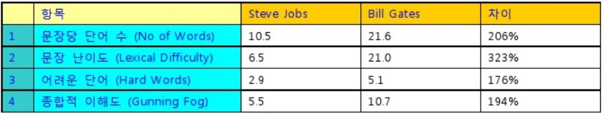 자, 여기서 Stave Jobs와 Bill Gates의 언어구사력을 비교해 보겠습니다: