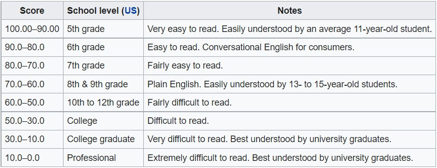 Flesch-Kincaid Method 는 일반적인 정보를 제공합니다. 장황하게 서식을 작성했다거나 문법이 조금 부족하지만 긴 단어들을 써도 점수가 높아지는 경우도 있기에 이 점수를 지나치게 신뢰해서도 안 됩니다. 그렇기에 테스트관리기관에서 이 방식과 더불어 사람을 통해 검토 또한 한답니다.