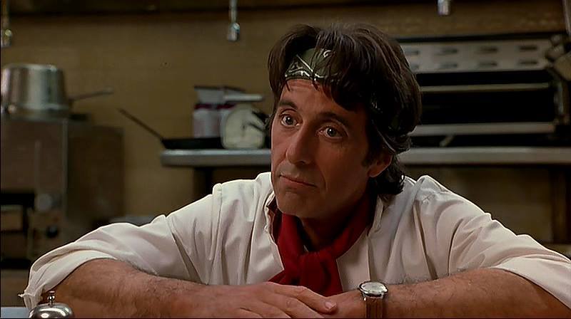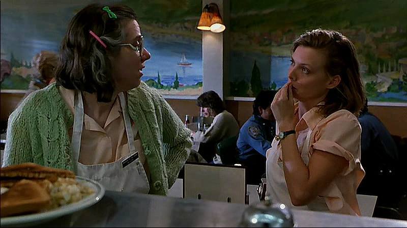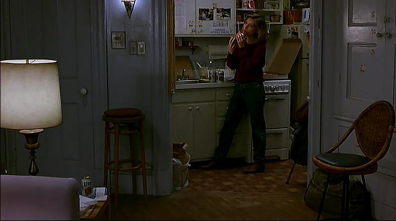 이 식당에서 일하는 사람들은 당연히 모두 소박한 사람들입니다. 여느 누구와 다르지 않은 보통 사람들이지요. Frankie와 Johnny 도 그런 사람들입니다. Johnny 가 집에서 TV를 보며 쉬는 장면과 Frankie 가 식당에서 퇴근한 후 집에 와서 간단하게 피자 한 슬라이스로 저녁을 먹는 장면, 그리고 식당 동료들의 저녁시간의 삶을 조금씩 보여주는 영상입니다. 요즘 영화엔 이렇게 천천히 흘러가는 장면이 나오지 않지요. 평화롭습니다. 안정감이 있습니다. 편안합니다.