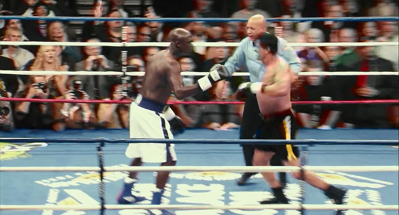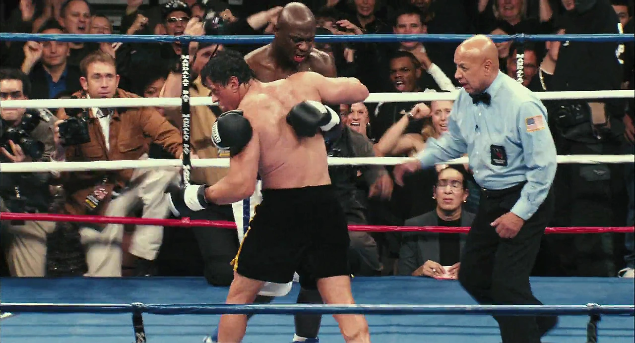 단순히 시범경기의 수준으로 흥미로운 몇 회만 진행한 후 마무리될 줄 알았던 모두에게 이 둘은 15회 full round 를 통해 진정한 의미의 boing match 를 보여줍니다. 여러 번 Dixon 의 강력한 펀치에 넘어진 Rocky 는 그래도 다시 일어나서 끈질기게 공격을 합니다. 경기가 마지막으로 치닫던 중 또 한 번 넘어진 Rocky 의 마음속에는 그가 며칠 전 아들에게 해 준 말을 떠올립니다: "It ain't about how hard you hit. It's about how hard you can get hit and keep moving forward; how much you can take and keep moving forward. That's how winning is done!"
