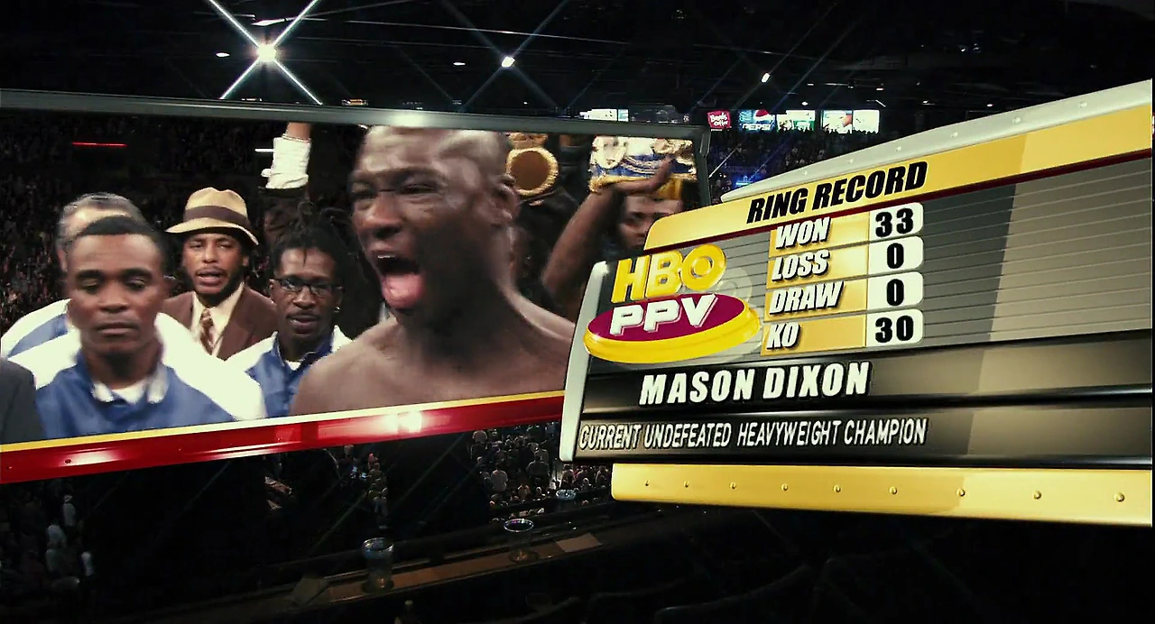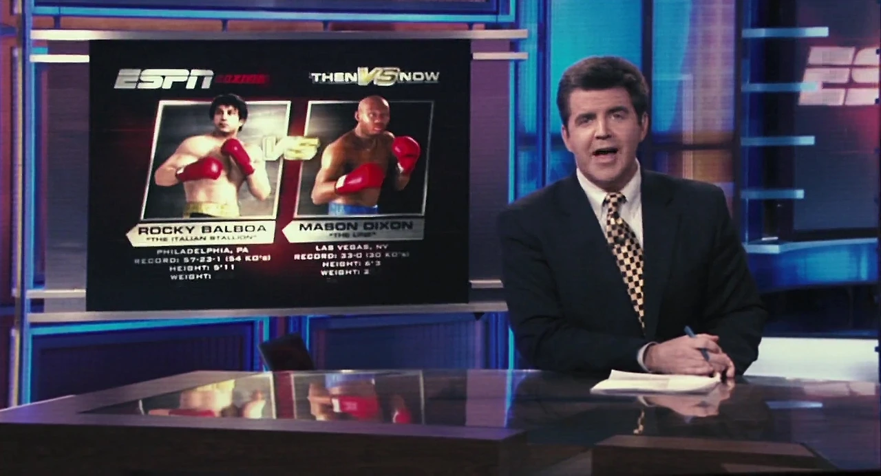 Rocky 가 이렇게 흘러가듯 삶을 살고 있을 무렵, 세계 권투 챔피언은 Mason "The Line" Dixon 가 독차지하고 있었습니다. 워낙 강력한 선수라 상대를 3회도 넘기기 전에 KO 시키는, 그렇기에 관중들에게 '즐거움'을 주지 못해, 아이러니하게도 비난을 받는 상황에까지 이릅니다. 너무 잘해서 비난받는 선수 - 그래서 심지어는 ESPN 에서 "만약 Dixon 이 Rocky 와 싸운다면? 이란 제목 하에 컴퓨터 시뮬레이션을 만들어 방영합니다. 많은 사람들, 특히 그의 아들이 친구들과 함께 bar 에서 이 프로그램을 보게 되지요. 마찬가지로 Rocky 와 그의 처형인 Paulie 도 이 프로그램을 보게 됩니다.