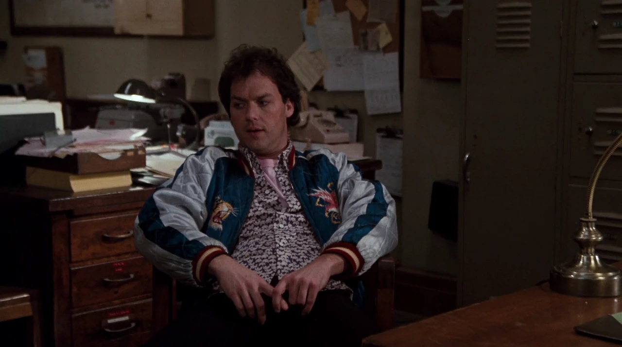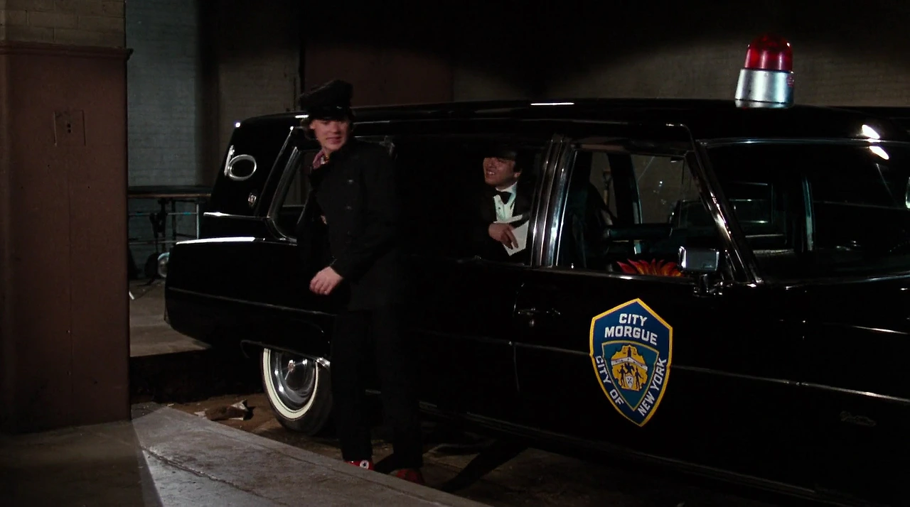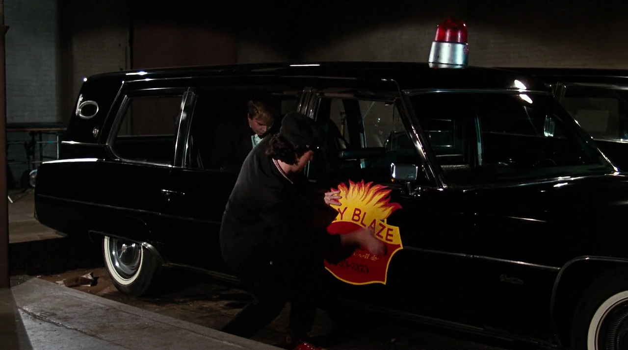 이 평화는 곧 깨지고 맙니다. 시에서 고용한 보조직원이 나타나고, 그의 이름은 Bill Blazejowski (Michael Keaton). 이 친구는 아주 괴짜입니다. 우울한 흔적은 하나도 없고 매사에 긍정적이다 못해 지나칩니다. 말도 쉬지 않고 계속해대는 바람에 Chuck의 평화는 깨지고 맙니다. 거기에 자신의 아이디어들이 언젠가는 큰 발명품이 된다는 생각에 녹음기를 꼭 가지고 나디면서 자신의 아이디어를 녹음해서 기록해 두지요. tunafish sandwich를 편하게 먹기 위해 살아있는 tuna에 마요네즈를 먹이로 주면 나중에 따로 섞지 않아도 된다는 발상 - 이 그의 아이디어들 중 하나입니다. 며칠 못 가 Bill 은 시신을 운송하는 검은 차량 (리무진에 가까운 모양새를 가진 시신 운구차량입니다)을 몰래 빌려 택시, 공항 픽업 등 부수입을 올리는 데 사용하지요.