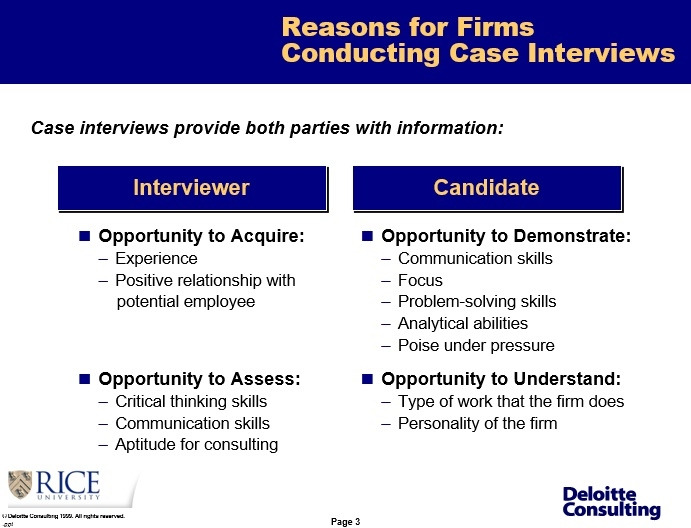 Alright. The first topic to go over is the reasons for firms conducting case interviews.