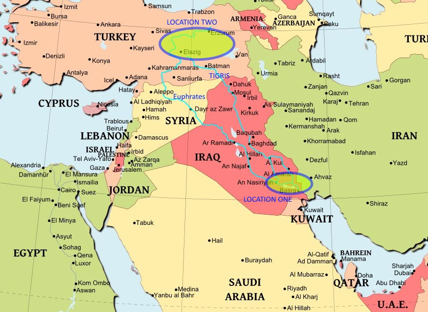 Adam과 Eve 가 쫓겨난 The Garden of Eden 은 어디였을까요? 성경에서는 "Eden was at the head waters of all four rivers (Euphrates, Tigris, Pison, and Gihon 이란 이름의 4개 강줄기가 시작되는 곳)"이라고 하고 "Euphrates and Tigris (유프라테스강과 티그리스강)"이 시작되는 곳이라고도 합니다. 이를 기준으로 하여 현재의 지도를 놓고 보면 터키의 동부지역이 에덴동산의 위치 (추정)로 예측됩니다.