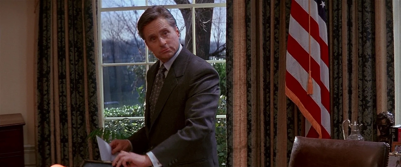 Rob Reiner 가 감독을 했고, 극본은 Aaron Sorkin 이, 그리고 Michael Douglas, Annette Bening, Martin Sheen, David Paymer, Michael J. Fox, 그리고 Richard Dreyfuss 가 출연한 호화스러운 영화지요. 화려하기도 하며 소박한 미국, 강함 속에서도 부드러운 미국을 Andrew Shapherd 라는 가상의 대통령을 통해 아주 잘 그려내었습니다. Dave (1993) 에서와 같이 무겁지도 가볍지도 않게, 그리고 큰 굴곡 없이 흥미롭게 이어지는 plot 들 속에서, 진한 향은 아니지만 옅지만 좋은 향기가 간간히 코끝을 기분 좋게 자극하듯 은근히 Americanism 을 거의 모든 scene 에 그려냈고, 미국인이라면 아마도 이 영화를 보고 난 후 기분이 나쁠 사람은 없울 듯 합니다. 대사의 정교함, 그리고 대통령의 공적인 일들과 사적인 것들을 균형있게 잘 그려냈지요.
