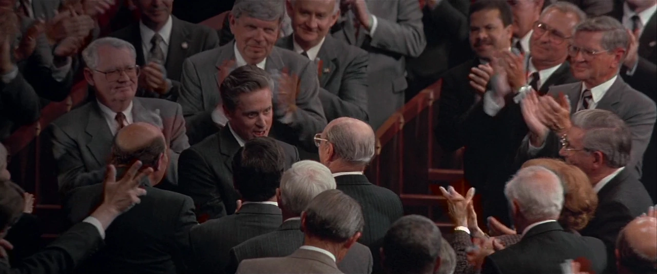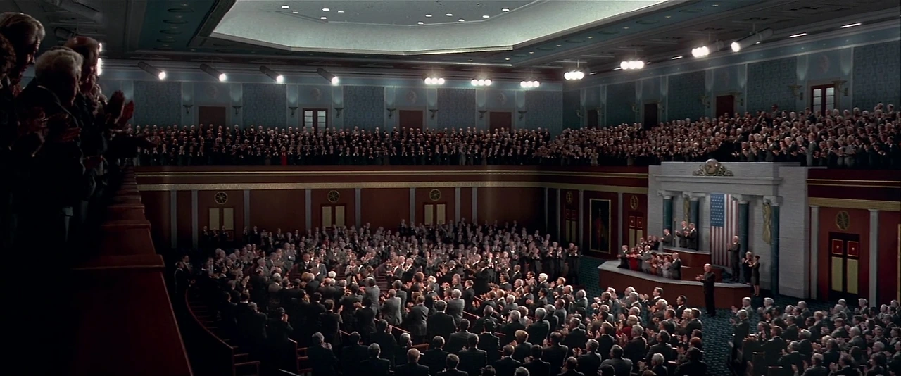 결국 대통령은 press conference 를 열고, 다양한 국내외 현안에 대해 의견을 피력하면서 동시에 Senator Bob Rumson 을 향해 공식 경고 및 선전포고를 합니다. 이 장면이 이 영화의 가장 멋진 장면이기도 합니다.