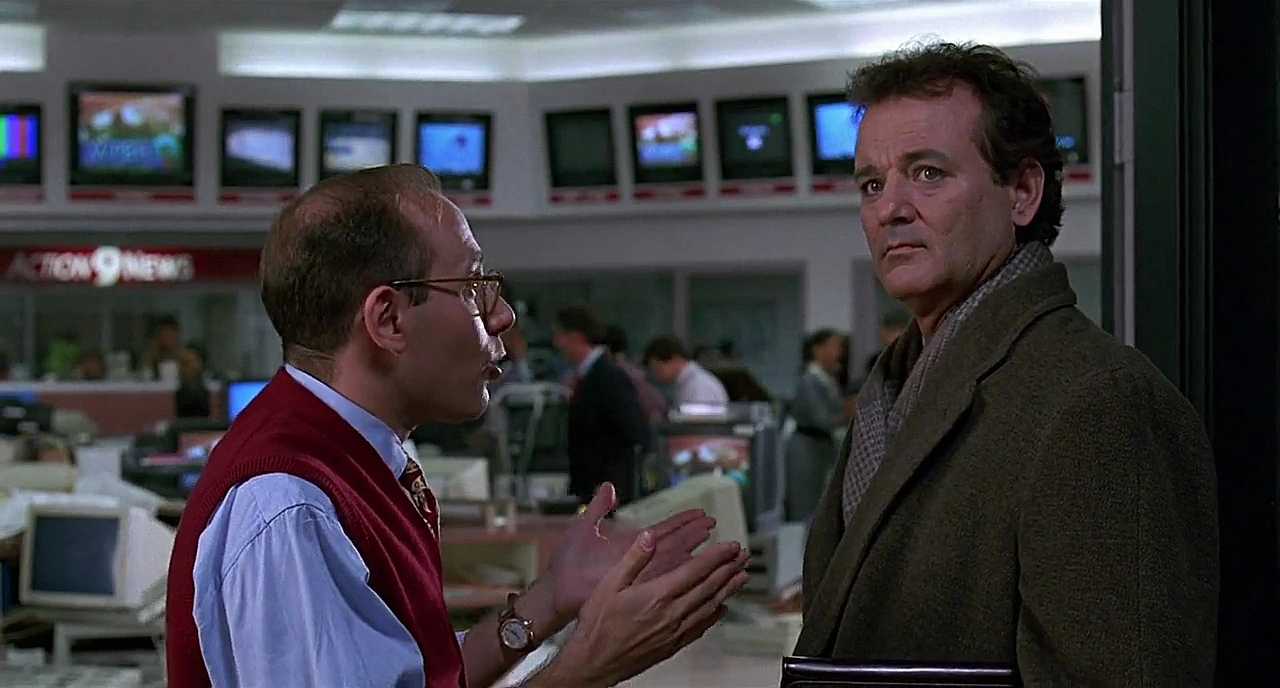 피츠버그의 mainstream 방송국에서 날씨를 담당하는 Phil Connors는 이기주의자에 가까운 사람이며 나시 시스트입니다. 주변 사람들을 그다지 신경 쓰지 않지만, 그렇다고 예의에 벗어난 사람은 아닙니다. 자기만의 선을 주변에 명확히 긋고 사는 사람이라, 정도 주지 않고 정도 받지도 않는 사람입니다. 자기 관리를 확실하게 하는 사람이라 일도 잘하고, 곧 다른 방송국으로 옮겨가는 계획을 세우고 있던 차, 2월 2일 Groundhog Day (펜실베이니아에 사는 마못이라는 들쥐류의 동물이 이 날 봄이 언제 올 지 예견할 수 있다는 풍습에 유래된 행사)가 다가오자 뉴스국에서는 펜실베이니아에서 매년 열리는 이벤트에 Phil 이 가서 취재를 해오도록 합니다.