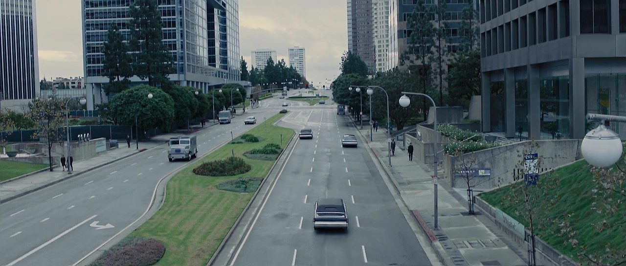 이 영화는 미래의 어느 시점 (2169년)을 배경으로 이야기를 그려내고 있습니다만, 스크린에서 보게 되는 실제 backdrop 은 마치 1950-60년대의 근대 산업화가 마무리되어가는 미국의 모습을 보는 듯합니다. 어찌 보면 pre-WWII era 같다는 느낌도 드는 것은 아마도 1940-50년대 Edward Hopper 가 그린 적막한 도시의 풍경을 그려낸 그림들과 유사한 느낌을 주는 쓸쓸하고 외로운 배경들도 많이 보이기 때문인 듯합니다. 차량들은 40년대보다는 조금 더 앞선 1960년대를 연상시키기도 하지요. 미래의 이야기인지 또는 parallel world 인지 확실하지는 않지만, 지난 시대의 요소들이 특정한 이유 없이 섞여서 묘한 이질감과 동시에 익숙함을 느끼게 합니다.