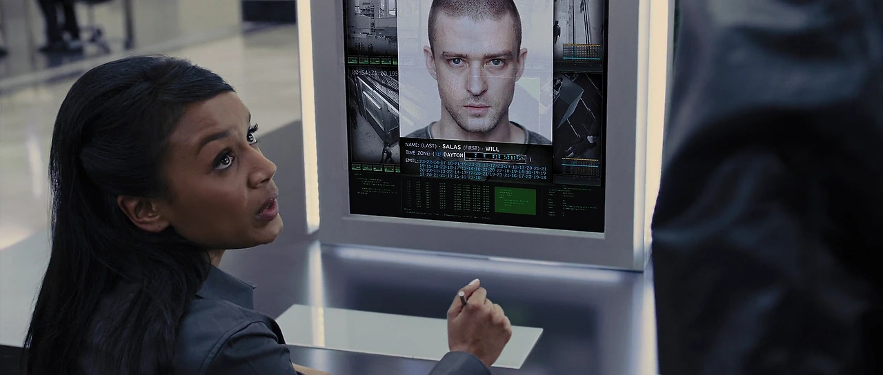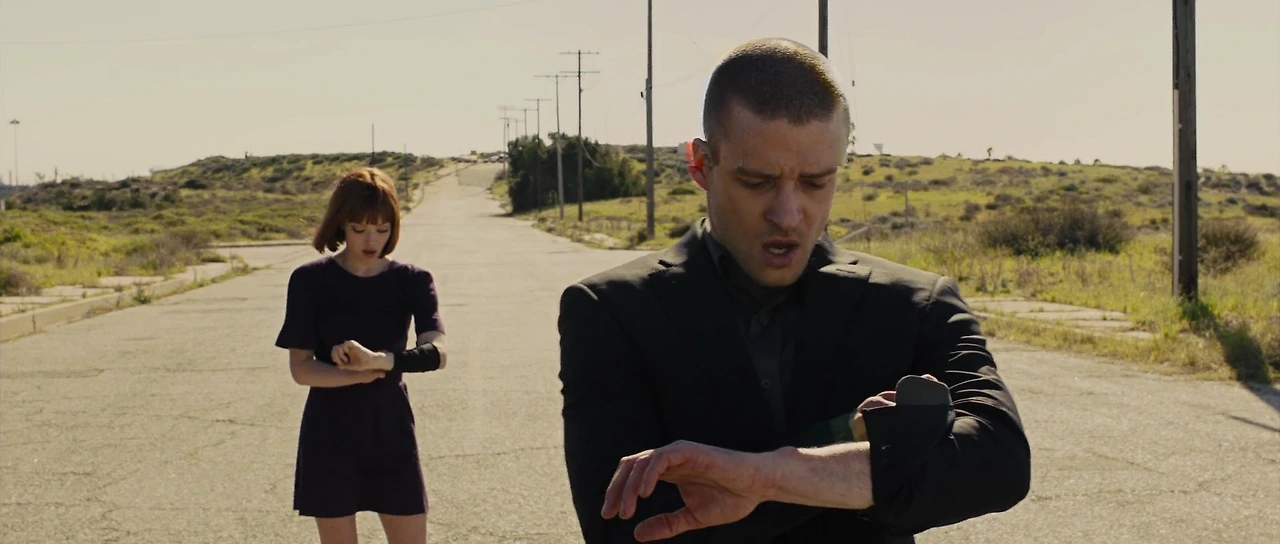 영화에서 보이는 세상은 genetically designed 된 인간들이 살아가는 공간입니다. 이 세상에서 사는 사람이면 그 누구 건간에 25살이 되는 생일이 되면 각각의 오른팔에 앞으로 남은 수명이 digital clock의 형식으로 표시가 되도록 되어있는 세상이지요. 노화도 그 순간부터 중단되며, 이 세상에서는 그 후로부터 그 팔에 나타난 수명대로 살아가게 됩니다. 삶에 수명을 더하기 위해 사람들은 일을 하지만 삶을 더해가기가 쉽지 않습니다. 반면 부자들은 일을 하지 않아도 풍족한 시간 (수명 또는 돈)을 누리며 살아가며 그들만의 도시에서 안전을 보장받으며 거주합니다. 이들 중에서도 가장 부유한 time zone 은 New Greenwich 이란 곳입니다. 이들보다 못한 시간 (돈)을 가진 사람들은 각자에 맞는 time zone에 속해 살아가지요. 이렇게 가진 정도의 기준으로 구성된 time zone 은 여러 곳이 있습니다. 어찌 보면 현재의 세상과 아주 흡사한 구조라고 볼 수도 있지요.