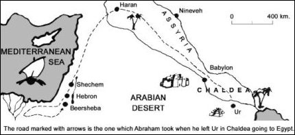 고심하던 Nimrod는 Terah를 왕궁으로 불러내어 이런 제안을 했다고 합니다: Nimrod 가 사람을 시켜 Terah의 아들을 죽이게 하고 그 대가로 막대한 재물을 주겠다는 제안이었습니다. 하지만 이에 Terah는 흔들리지 않았습니다. 그는 Abram을 그의 아내와 젖먹이 유모와 함께 비밀리에 동굴에 숨기고 매달 식량을 공급하는 방식으로 난리를 피했다고 하지요. 이후 Terah는 가족을 이끌고 Ur 지방을 떠나 Canaan (가나안) 지방으로 가는 여정을 떠납니다. Nimrod을 피해 떠난 영구적인 이주였지요. 하지만 Terah는 Haran이라는 도시에서 그 생을 마감하고, Abram과 그의 남은 가족들이 Canaan으로 이주를 하게 됩니다.