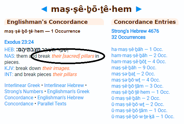히브리어로 matstsebah, 즉, 어느 곳에 위치한 것으로, 기둥이나 돌로 만들어진 기념비, 필라 등을 의미합니다. 이 단어가 쓰인 성경 부분을 인용하겠습니다: