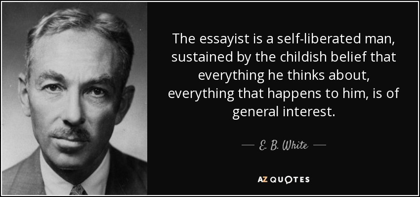 "에세이 작가는 자신이 생각하는 모든 것들과 자신과 관련되어 일어나는 모든 일들에 대해 일반 대중들도 관심을 둘 것이라는 철없는 생각에 사로잡힌 자기 멋대로인 사람이다."