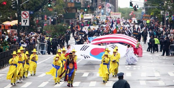 뉴욕에서는 매년 Korean Parade 가 크게 열렸었지요. 2010년대 중반부터 규모가 대폭 축소되어 거의 골목이벤트로 변했지만, 한창이던 당시 30여 회에 걸쳐 열린 이 행사는 Avenue of America (6th Avenue) & 38th Street에서 시작되어 27th Street까지의 구간에서 진행되었습니다. 오색 꽃차와 마칭밴드, 기마대, 풍물패, 5백여 개 한인단체 등 최대 5000명까지 참가했던 행사지요. 구경하는 사람들까지 합치면 수만 명짜리 행사였습니다. 뉴욕에서 각국을 대표하는 퍼레이드는 연간 10개 정도가 열리는데 아시아에서는 한국이 유일했고, 코리안 퍼레이드는 뉴욕시의 5대 퍼레이드 가운데 하나로 자리 잡았었지요.