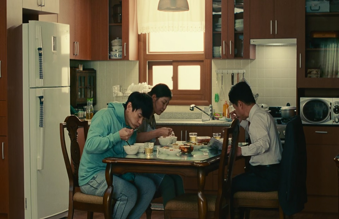 남자 주인공이 젊은 시절 가족들과 같이 하는 식사장면도 그렇습니다. 아버지는 왜소한 체구에 억지로 아들과 또는 아내와 눈빛조차 맞추지 않으려는 듯 고개극 숙이고 음식을 '삽입'중이고, 아들 또한 조금은 추하게 음식을 조금은 폭력적으로 먹고 있습니다. 오히려 2001년 "친구"에서 주인공이 어린 시절 그의 아버지와 식사를 하는 모습이 더 '고상해'보입니다. 아직은 한국에 대한 해외의 인상이 제대로 설정되지 않은 상태에서 이런 이미지는 '위험'합니다. 실제, 우리 이렇게 안 먹었잖아요?