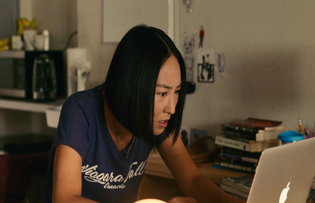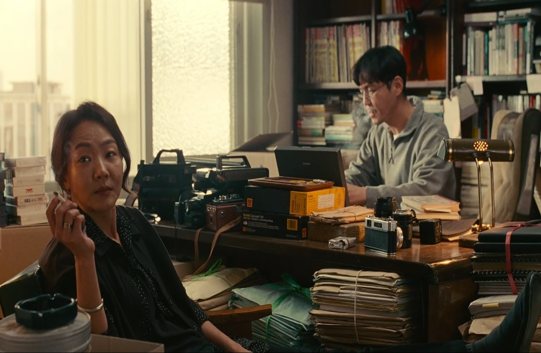 Nora Moon의 어머니와 아버지, 2000년대 초반의 한국인 부부 맞는지? 합니다. 남자는 영화감독이고 여자는 미술가라는 설정이 있었지만, 왠 갑자기 basass parents 설정인지 이해가 안 되는군요. 아이들 앞에서 담배를 피워대고 그 연기를 내뿜는 어머니의 얼굴표정도, 2024년의 한국도 이렇지는 않지요. 불량가족이었을까요? Weed를 피우는 장면이 아니었던 게 다행입니다. 거기에 또 안 어울리는 소품 하나를 추가했더군요.