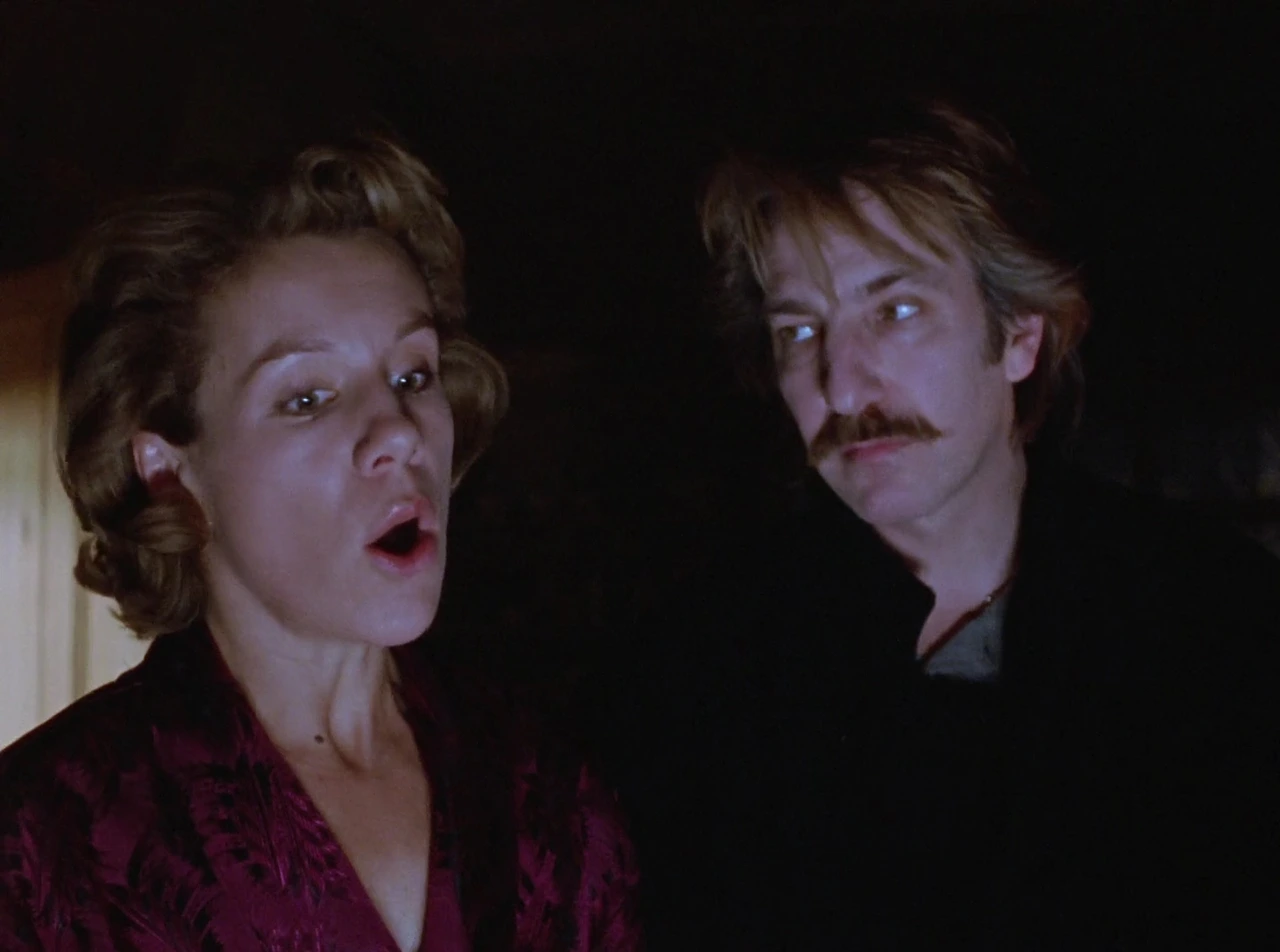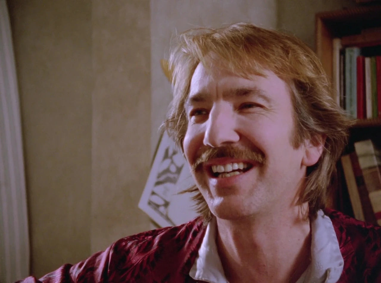 이 영화 Truly, Madly, deeply (1990)"를 두고 Roger Ebert 도 이런 말을 했습니다: "여자배역은 Juliet Stevenson 이 연기하는데, 프랑스 영화에서 볼 수 있는 Nathalie Baye처럼, 지적이지만 연약한 여성 캐릭터지요. 남자배역은 Alan Rickman으로, 스크린에서 보면 어디선가 본 적이 있다는 것을 알 수 있고 영화 내내 그가 "Die Hard"의 악당이었다는 연결고리를 찾지 못한 채 기억을 뒤흔들게 될 것입니다 (The woman is played by Juliet Stevenson, as one of those intelligent but vulnerable women like Nathalie Baye plays in French films. The man is Alan Rickman, who you will look at on the screen, and know you have seen somewhere, and rattle your memory all during the movie without making the connection that he was the villain in "Die Hard.").