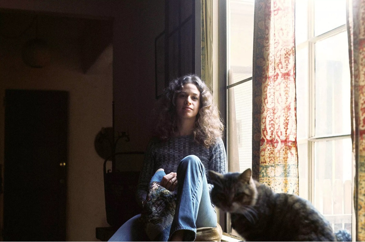 Carole King and her friend Telemachus during the photo shoot for the “Tapestry” album cover.