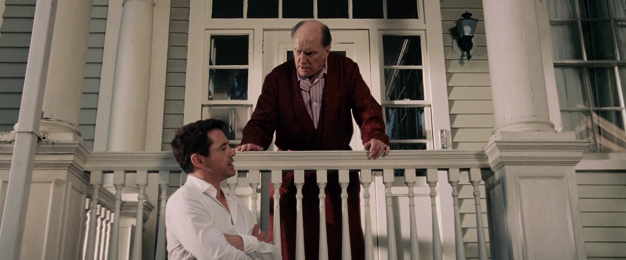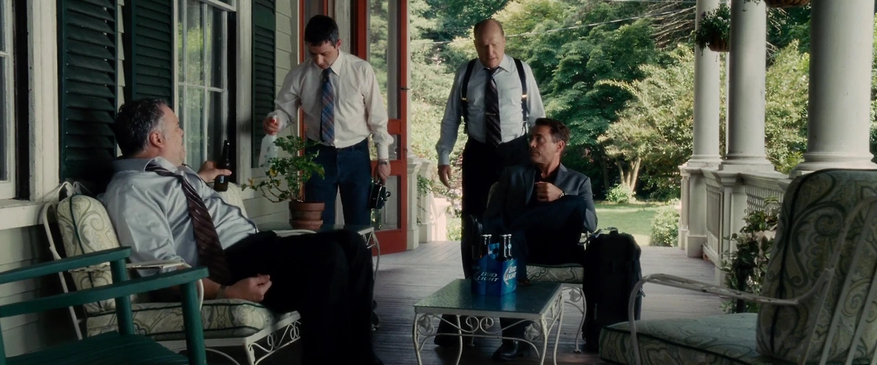평생 엄격했던 아버지이자 인디아나의 작은 도시 Carlinville 이란 곳에서 판사로 수십 년을 봉사해 온 Joseph Palmer와 그의 세 아들 (Hank, Glen, 그리고 약간의 지적 장애가 있는 Dale) 주변에서 일어난 일들을 그린 영화입니다. 첫아들인 Glen (Vincent D'Onofrio) 은 메이저리그 야구선수가 될 수 있었으나 십 대 시절 동생 Hank (Downey Jr)의 운전실수로 인한 자동차사고로 인해 오른손에 큰 부상을 입어 그 꿈을 접고 평범하게 살고 있습니다. 둘째인 Hank는 Chicago에서 아주 유능한 형사재판 변호사지만 아내의 외도로 인한 충격과, 법을 마음대로 유린하는 자신의 '특기'에 많은 회의감을 가지고 살고 있지요. 순하기만 한 막내인 Dale의 아마도 암울할 앞날도 이 가족에게는 무시하지 못할 걱정거리로 보입니다.