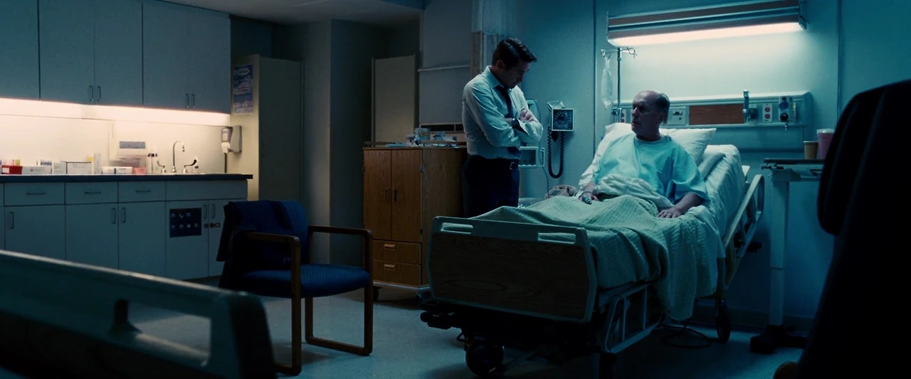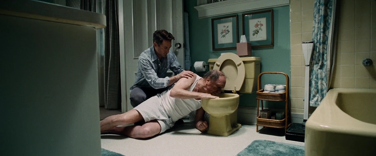 Hank 가 다시 시카고로 떠나기 전날 밤, 아버지가 홀로 운전을 하고 나간 밤길에 hit and run 사고를 냅니다. 다음 날 다시 시카고로 떠나기 전 Hank는 우연히 아버지의 차가 일부 파손된 것을 보게 됩니다. 삼 형제가 이를 보고 모두 의아해 하지만 자신이 그런 것이 아니라고 우기는 아버지의 역정에 모두 입을 다물지요. 하지만 정작 그 자신 (아버지) 은 이를 기억하지 못하지요. 나중에 알게 된 사실이지만 판사 아버지는 아내 외엔 아무에게도 알리지 않은 상태로 4기 암투병 중이었고, chemo의 역효과로 단기적 기억상실증 또한 앓고 있었습니다.