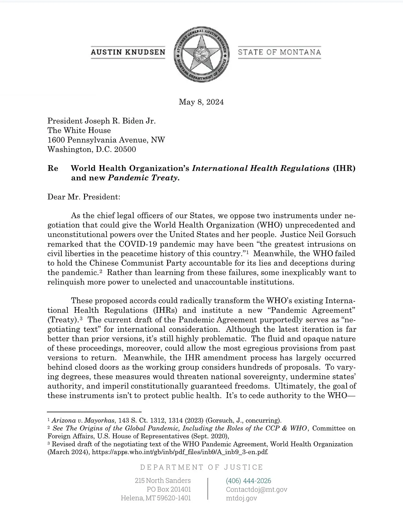 이에 대해 미국에서는 여러 주를 대표하는 다수의, 하지만 충분하지 않은 수의 attorney general 들이 (미국 연방 정부의 최고위직 변호사 Attorney General 들이라는 의미) 의견을 모아 Biden 에게 WHO 의 이와 같은 강요를 거부하라는 청원을 제출하고 있답니다. 이유는 만약 또 다시 pandemic 이 발생할 경우 WHO 가 전세계적인 방역 및 예방관련 통제권을 가지게 된다는 점에 있는데, 물론 지금 제시된 treaty 세부내용이 강압적인 조치를 취한다고 구체적으로 명시되어 있지는 않지만 loophole 이 너무 많다는 점이 극히 우려된다고 합니다. 그렇기에 미국 법조계에서는 미국헌법에도 위배되는 이런 국제법 등에 동의하면 안 된다고 나서는 것이겠지요.