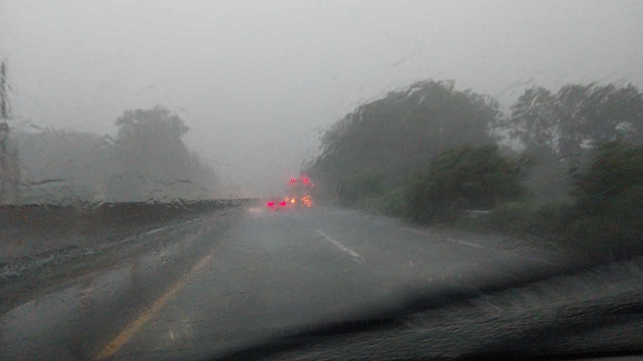 그래도 앞에, 대략 100m 앞에 달리고 있던 두 대의 차량이 있었습니다. Hazard lamps를 켜고, 저속운행을 하고 있더군요. 도로에 강하게 내려친 후 안개처럼 산산이 부서진 물방울들과, 여전히 시야를 막고 내리는 강한 빗속에서 저 두 대의 차에서 깜박이는 lamp 덕분에, 마음이 적지 않게 불안한 가운데서도 최소한의 안도감을 가지며 5km 정도를 더 운행할 수 있었습니다. 저 또한 hazard lamps를 켜고, 뒤차들의 운행에 도움이 되도록 했음은 물론이지요. 이후에는 비가 잦아들어 평상시처럼 다시 운전을 이어가게 되었습니다. 앞에 가던 두 대의 차도 마치 영화 속 영웅들처럼 "내가 할 일은 다 했소"라고 말하듯, 그들이 가는 길로 사라졌습니다.