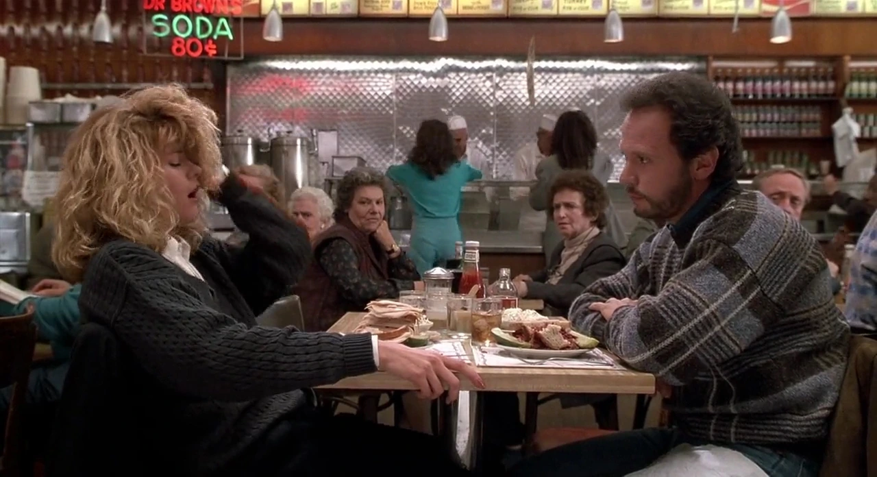 이 영화의 이 대사 ("I will have whatever she's having" - “저 여자가 주문한 것하고 같은 걸로 주세요)가 등장한 곳, 즉, 이 두 주인공간에 펼쳐진 연애에 대한 꽤 적나라한 대화를 촬영한 곳이 Katz's Delicatessen 이란 곳입니다. Lower East Side Manhattan 에 위치한 Katz's Delicatessen 에서 벌어지는 장면이지요. Harry 와 Sally 간 벌어진 연애와 관련된 설전이 Sally의 fake orgasm 으로 끝이 난 후, Sally의 '에너지'를 부러워한 듯 “저 여자가 주문한 것하고 같은 걸로 주세요"라고 웨이터에게 주문을 한 여성은 이 영화를 제작한 Rob Reiner 감독의 어머니인 Estelle Reiner 였답니다.