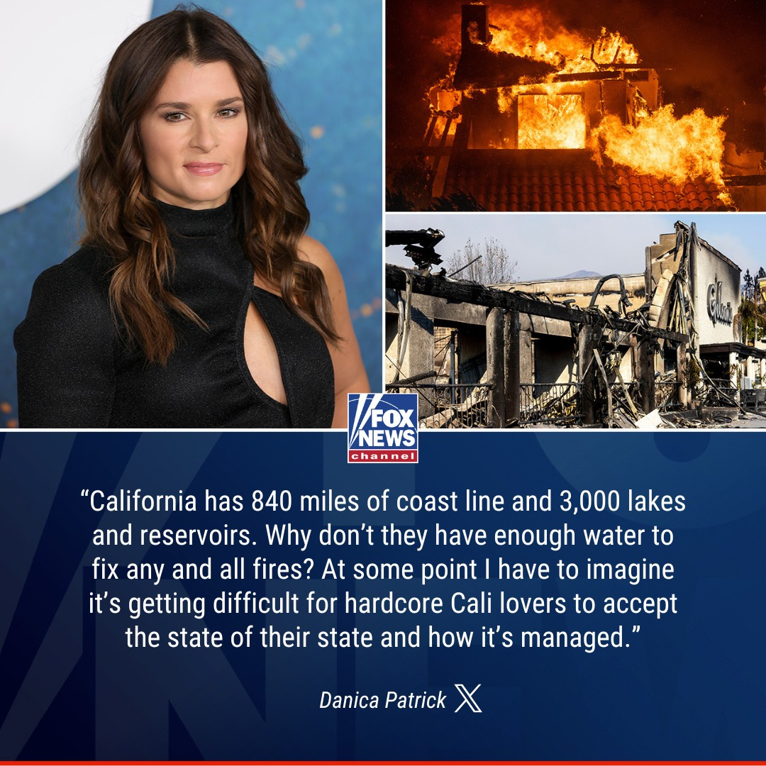 하지만 Los Angeles... 그다지 마음에 들지 않는 도시입니다. 진보적인 정치인들과 이들을 지지하는 사람들이 80% 이상인 독보적인 California, 그 중심에 있는 Los Angeles - 보통 민주당의 정책은 구멍이 많은 것으로 알려져 있고, 이번에도 여실히 드러났지요. 소방작업에 필요한 물이 저장되어 있어야 할 저수지들 대부분을 비워놓고 불을 끄려고 하니 기본이 안 된 사고를 가진 결과입니다. 그리고 보험처리 완벽하게 되어있는 유명배우들이나 가수들의 피해를 더 두각시키는 미디어도 몰락하는 미국의 한 면을 그대로 드러내고 있지요 (아래: Former NASCAR star Danica Patrick calls out California, publicly questioning why water availability is an issue for firefighters battling the devastating wildfires).