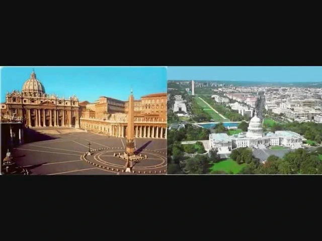 미국 국회의사당 (The Capitol Building)과 워싱턴 기념탑 (Washington Monument)의 배열, 우연은 아니겠지요 - 바티칸의 건축적인 배열과 아주 동일한 모습입니다. 돔 형태의 건물 맞은편에 오벨리스크가 자리를 잡고 있지요. 일직선상에 이 두 건축물이 배열되어 있는 도시의 구조는 의도적입니다. 예전 에피소드에서 알려드린 대로 obelisk는 아세라 여신 (Asherah)을 상징하기도 하지요. 성경에서는 이 탑을 Asherah Pole이라고 지칭한 구절이 많으며, 이는 창조주에게 가증한 것으로 기록되어 있습니다. 이집트 등의 문화에서 어떤 신적인 존재를 위해 세워진 것이라는 것은 이미 아시리라 봅니다.