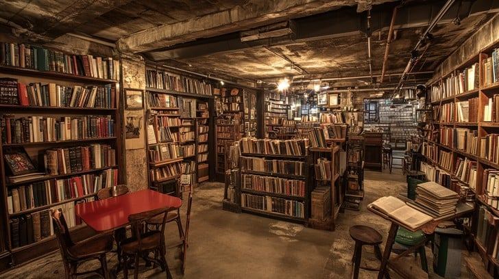 이 지점 외에도 144 Bleecker Street on Laguardia Place 지점에도 가 본 기억이 있습니다. 6개의 지점 중 세 곳을 갔었는데, 이 중 한 곳은 aisle 이 몇십개나 있고 이들에 꽃혀있는 DVD 와 VHS cassette 들의 규모가 대단했었습니다. 마치 아래 사진속 bookstore 와 같은, 아니, 이 이상의 massive 한 scale 이었지요.