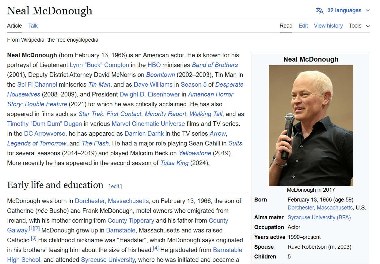 Neal Mcdonough 는 현존하는 배우로, 베드신이나 키스신을 하지 않기 위해 일부러 매번 악역만 했다고 합니다. 종교적인 신념이 강하고, 아내에 대한 사랑이 대단한 남자라고 알려졌고, 초반에는 이로 인해 일이 없었지만 연기력으로 인해 꾸준히 연기를 하고 있답니다.