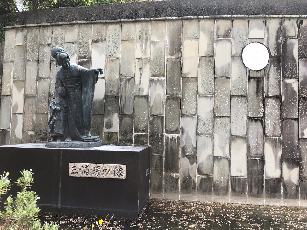 그런 연유로 구라바엔에는 푸치니의 동상이 세워져 있다. 푸치니 동상의 건너편에는 미우라 다마키상(像)이 세워져있다. 그녀는 일본의 프리마돈나로서 푸치니의 오페라 '나비부인'에서 여주인공 초초상 역할을 가장 많이 맡았다고 한다.