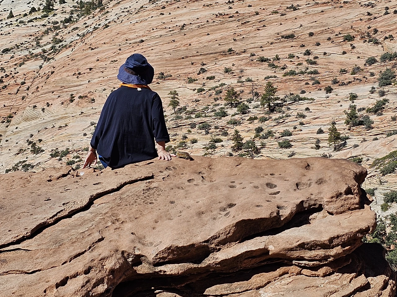 가이드의 설명에 의하면 이 다람쥐들은 자이언 캐년 측에 의해 한국에서 입양되어 이 계곡에 방류된 것이라고 한다. 자이언 캐년에서 찍은 사진에도 이 다람쥐들이 등장한다. 사진을 자세히 보니 다람쥐는 나의 손 주의를 맴돌고 있었던 것 같았다. 또 다른 사진에도 다람쥐가 가방을 쳐다보는 모습이 확인되었다.