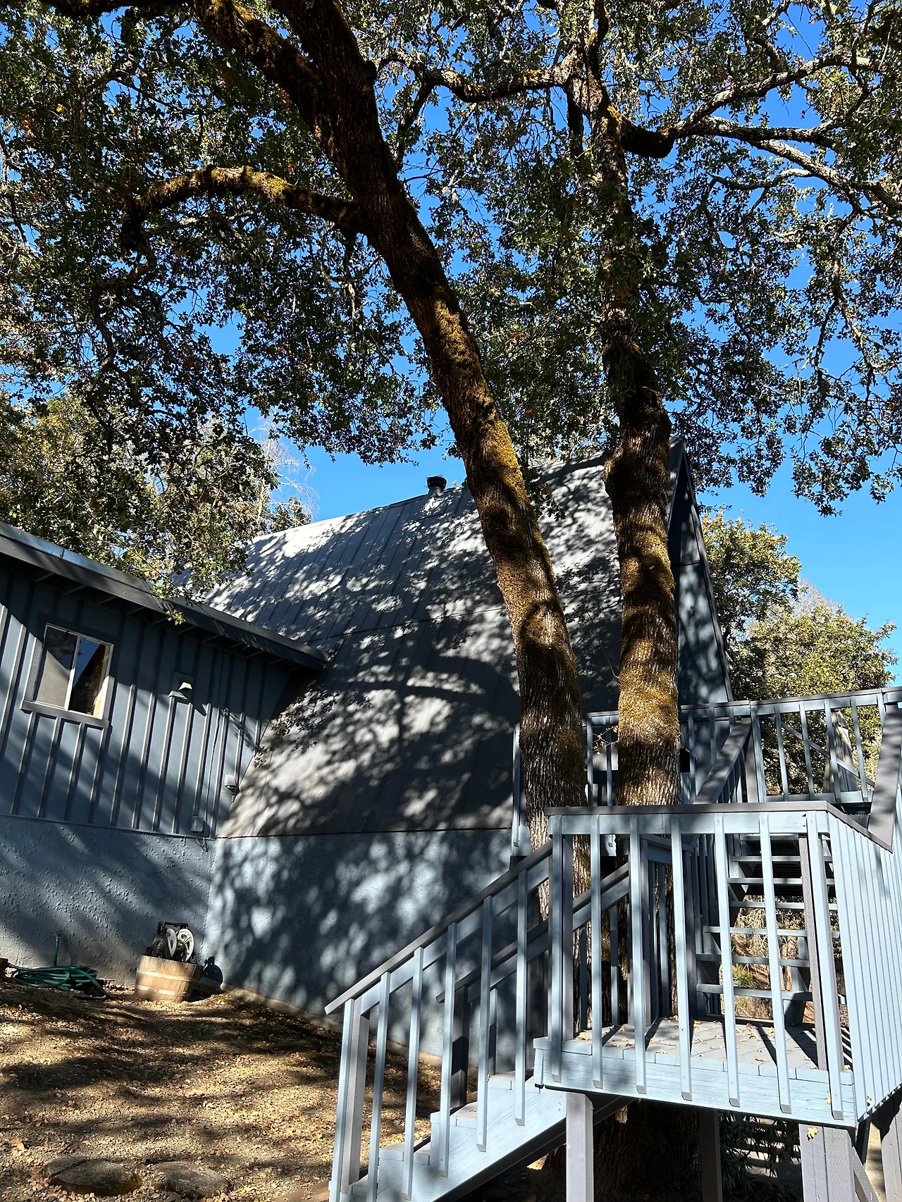 이곳은 나파밸리의 북동쪽 산사면에 위치하고 있는 듯, 나파 밸리를 감싸고 있는 건너편 산맥 아래로 나파의 포도밭 전경이 아스라이 보였다. 주위의 오크나무 숲에서는 새들의 요란한 지저귐이 들려왔다. 주변을 둘러보니 오크나무 숲 사이로 우리가 든 산장과 비슷한 집들이 띄엄띄엄 흩어져 있었다. 사람들의 모습이 보이는 곳도 있었다.