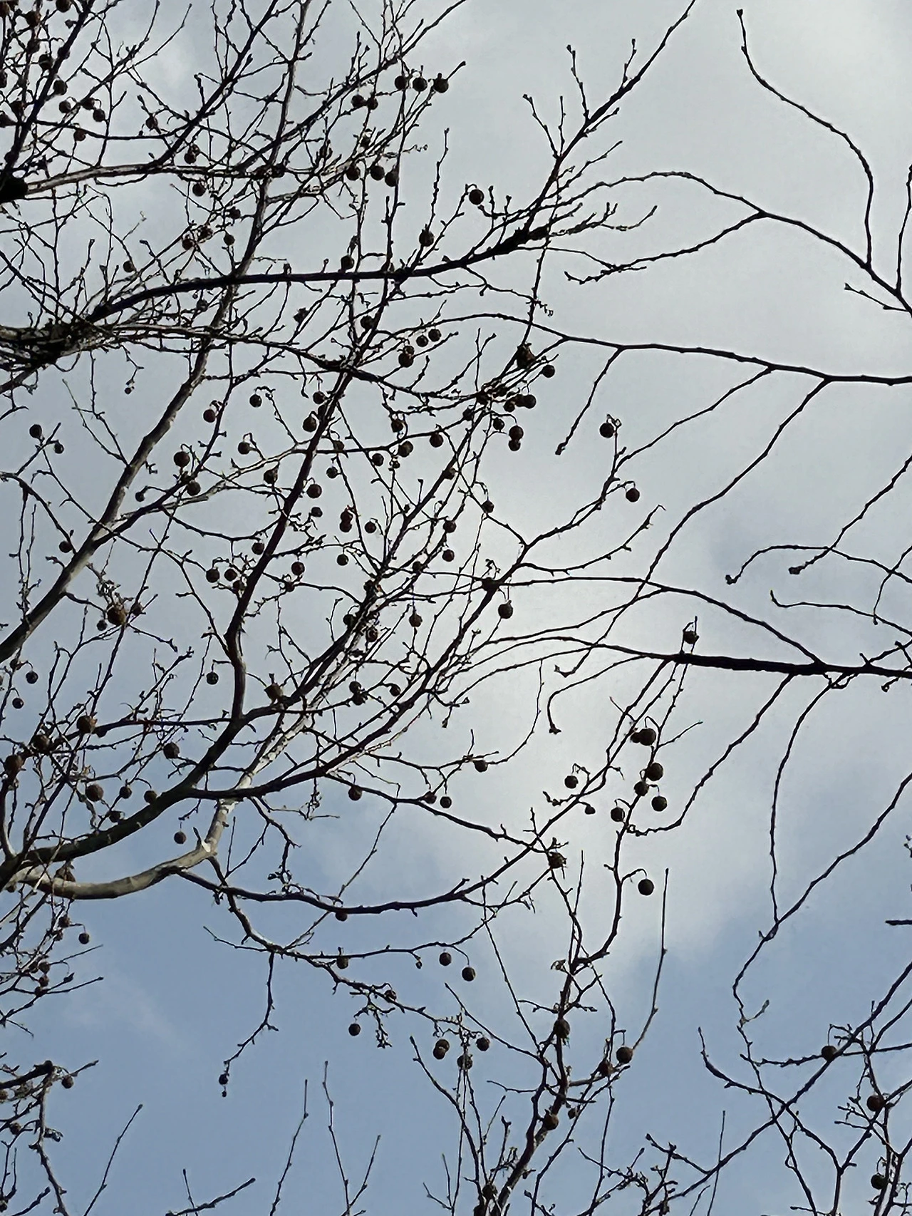 잎이 떨어진 겨울에 플라타너스의 열매를 관측하기 쉬우므로 나는 플라타너스 나무를 만날 때마다 목을 빼고 나무를 올려다본다.