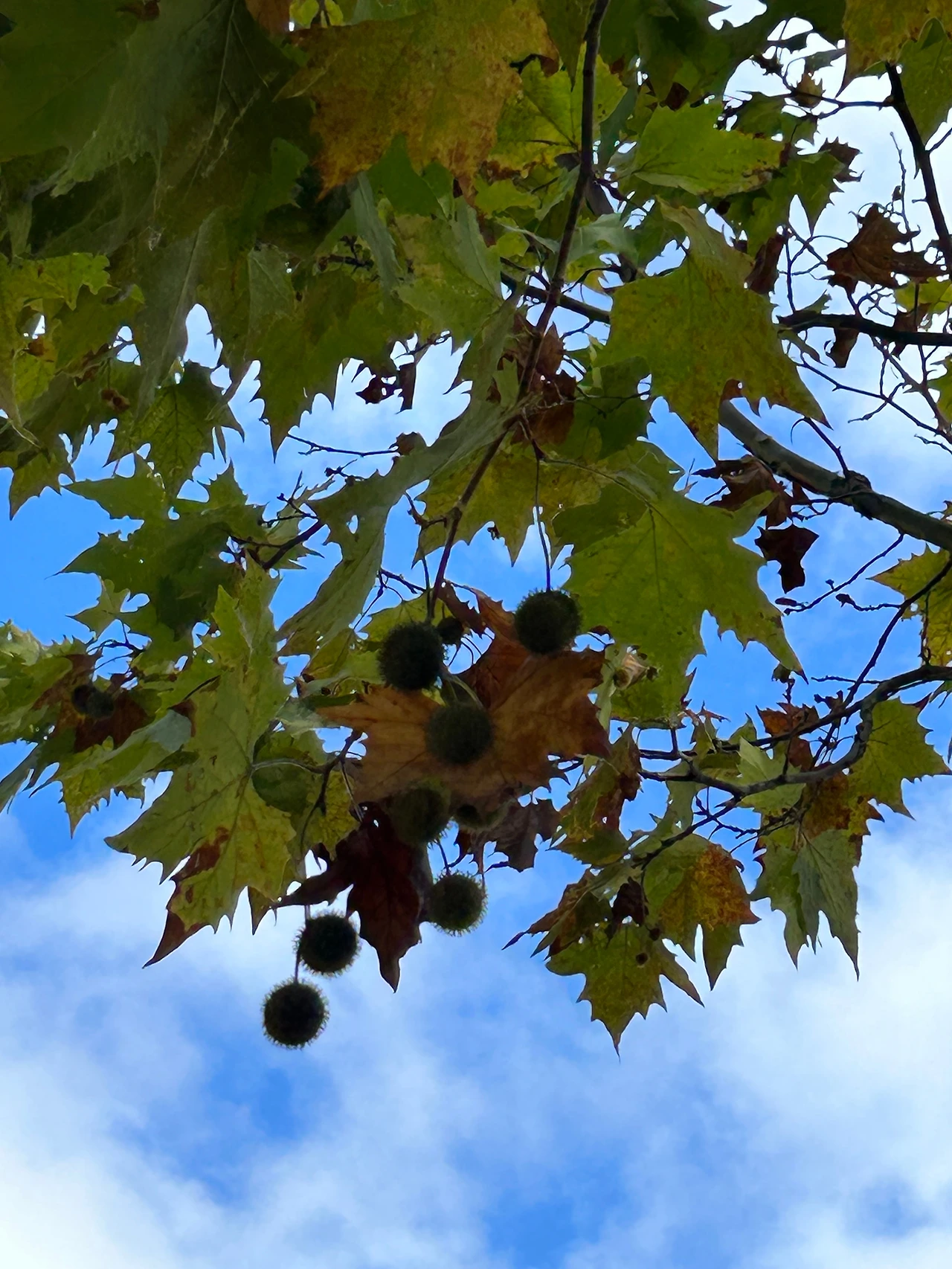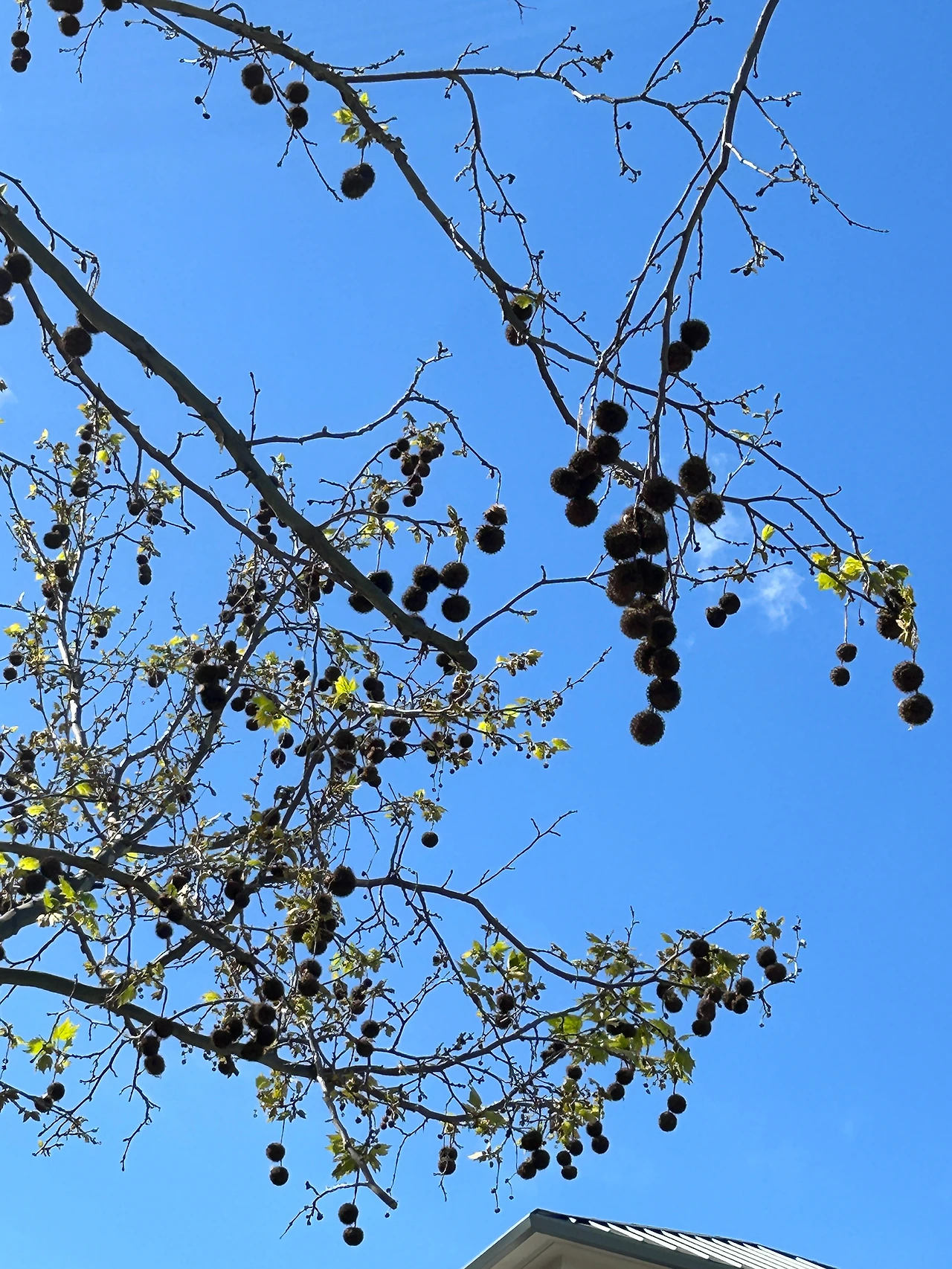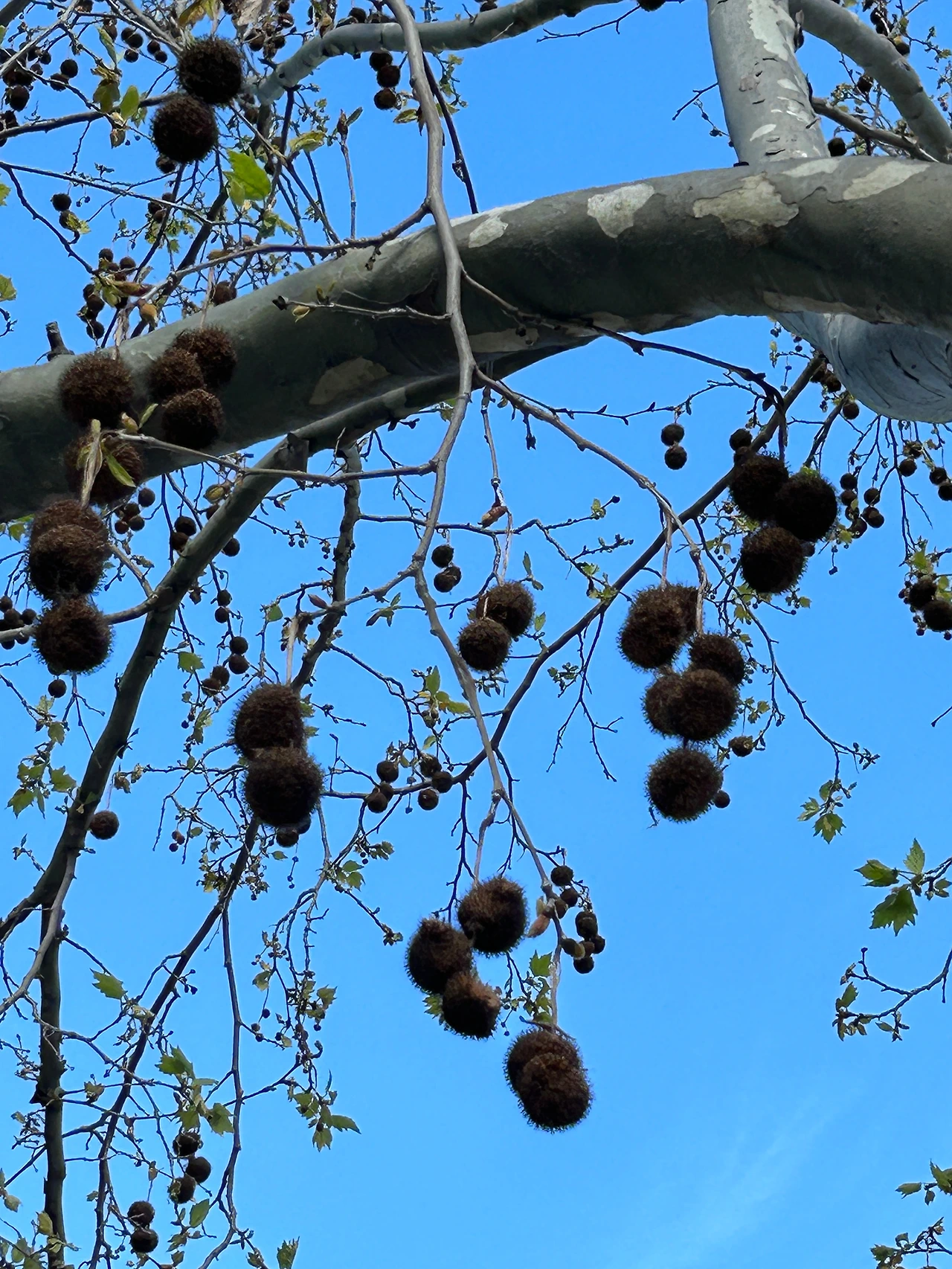 나는 이렇게 열매가 많이 달린 플라타너스 나무를 본 적이 없었다.