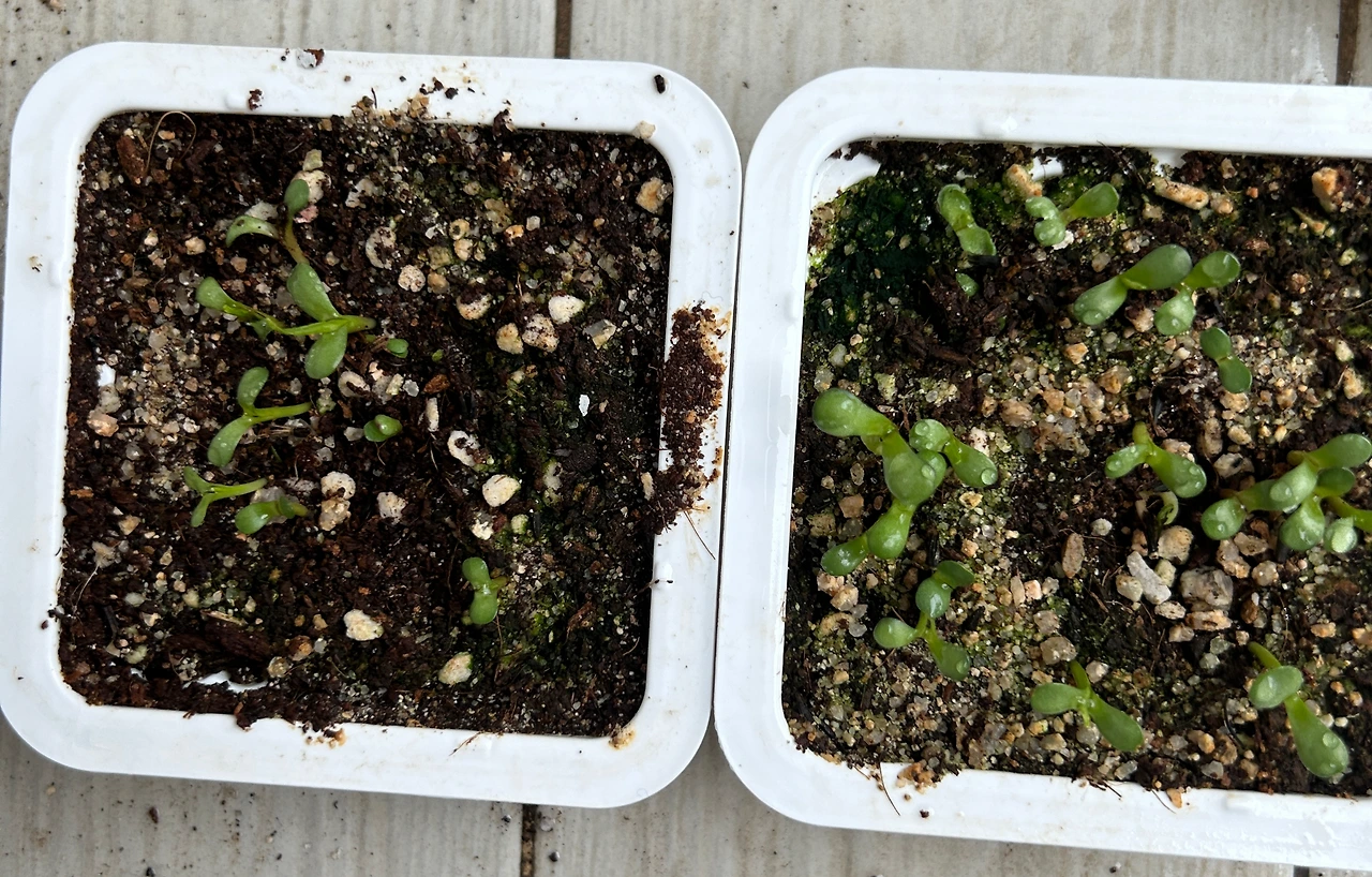 아파트 베란다가 따뜻해서였던지, 아니면 아침저녁으로 들여다보고 물을 뿌려준 나의 정성 탓이었던지 씨앗을 뿌린 후 2주경부터 씨앗들이 왕성하게 싹을 내었다.