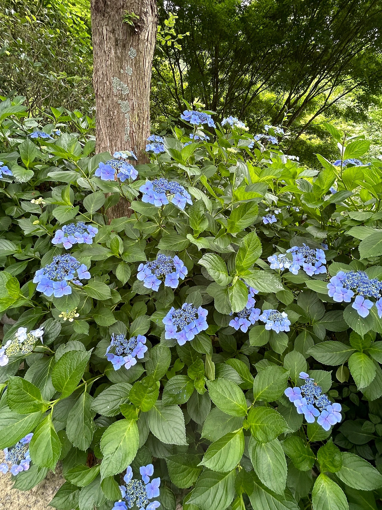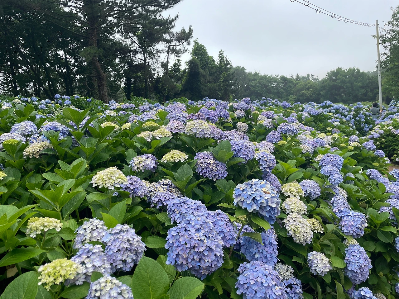 그런데 우리의 수국 여행 중 가장 아름다웠던 곳은 고성의 <그레이스 정원>이었다. 백운산 자락의 17만 평의 땅에 메타세쿼이아 나무가 숲을 이루고, 그 아래에 30만 그루의 푸른 산수국들이 미모 경쟁에라도 나선 듯 저마다 아름다운 모습을 뽐내고 있는 곳이었다. 나는 산수국의 매력에 완전 매료되었다. Deep marline blue색의 산수국들이 어찌나 아름답던지 마치 꿈길을 거니는 것 같았다.