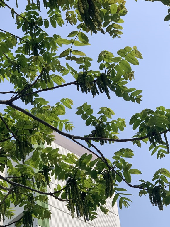 양재천을 걷다가 대치중학교 근처 둑길에서 알지 못하는 나무를 마주하였다. 나무는 늘씬하고 시원시원하게 뻗어 올랐고 잎은 하나의 잎자루에 작은 잎이 열 개 너머 달려 이국적인 느낌을 주었다. 가죽나무 같기도 하고 호두나무 같기도 한데, 자세히 보니 호두처럼 생긴 원추형의 열매가 서너 개 뭉쳐 달려 있었다.