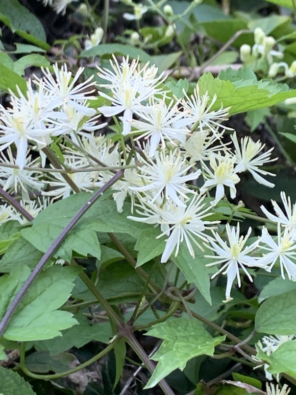 이즈음 눈에 띄는 식물이 하얀 꽃을 무더기로 피우는 사위질빵이다. 이 식물은 무자비하게 다른 나무를 휘감고 올라가 떡하니 태양 쪽으로 가장 넓은 면적을 확보한다. 그리고 흰 꽃을 엄청 피운다. 가까이에서 보면 흰 꽃봉오리들이 줄줄이 맺혀 있어 꽃을 피우고 말리라는 기세가 대단하게 느껴진다. 꽃을 피우기 전에는 이 식물이 있는지도 몰랐었는데 흰꽃을 피우며 제 존재를 과시하자 자연히 눈길을 끌게 되었다. 역시 식물은 꽃을 피워야 비로소 완성이 된다.