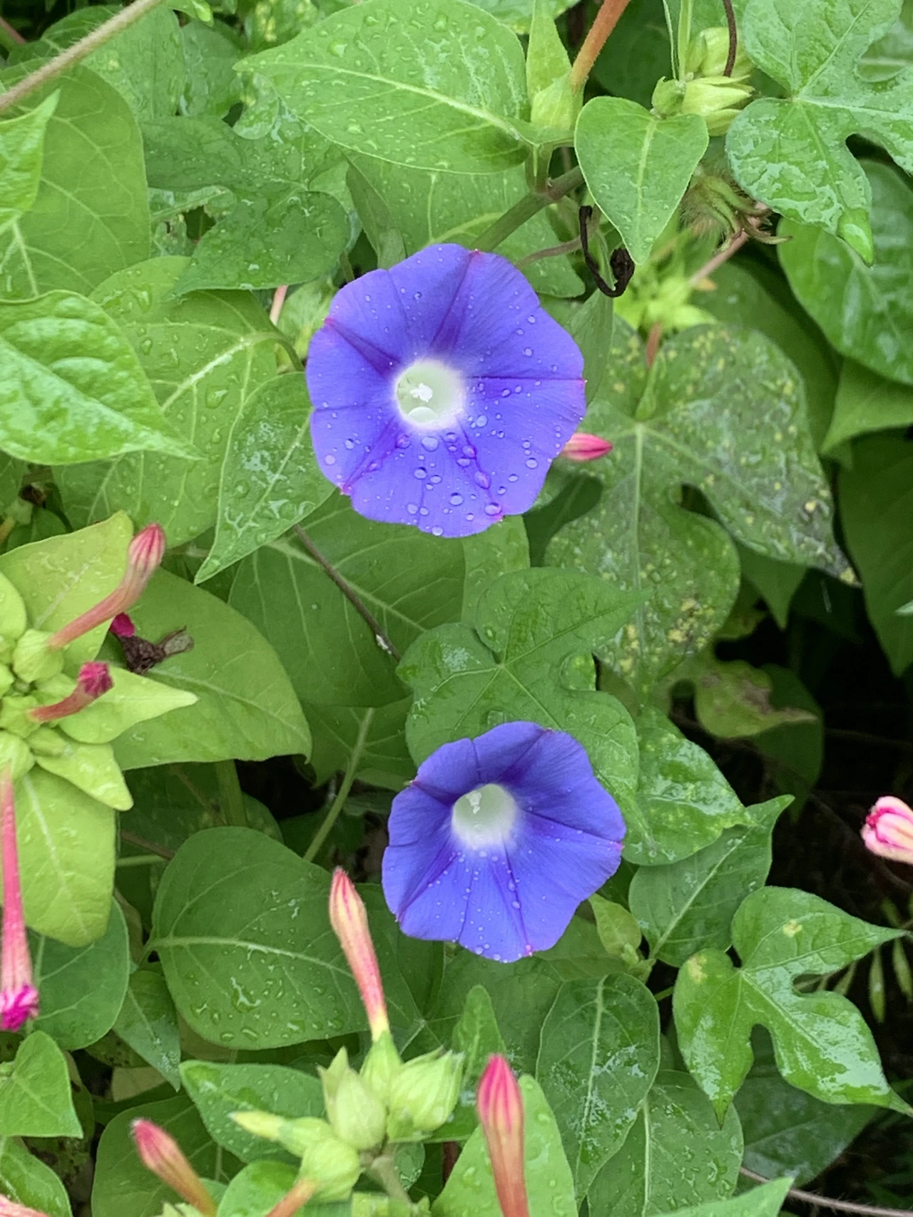한편, 대치유수지 부근의 둑길 옆으로 나팔꽃들이 큰 무리를 형성하고 있다. 나팔꽃 풀도 덩굴을 뻗어 생존하는 전략을 취하고 있으므로 줄기를 만들어 세우는 노력 대신 빨리 자라고 꽃도 크게 피우는 전략을 취한다. 몸에 비해 커다란 꽃을 피우는 나팔꽃이 청아하고 아름답게도 보이지만 남을 타고 올라 이득을 차지하는 매우 영리하고 약은 식물이 나팔꽃이다. 나팔꽃이 가진 전략을 인정하면서도 왠지 덩굴식물은 정당하게 노력하지 않고 남의 노고를 빼앗는 도둑같이 여겨져 예쁘다가도 얄미운 생각이 든다.